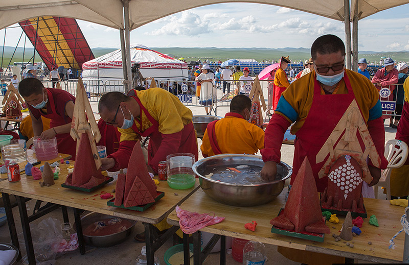 One interesting competition among monks during Danshig Naadam was balin competition which you can see photos below. Balin is barley that is pre-prepared to be shaped and it is special feeding to the deities only made by monks and Buddhist figures. After making balins, it is put on the altar which is some way of showing the food specially served and dedicated to the Buddha and deities.