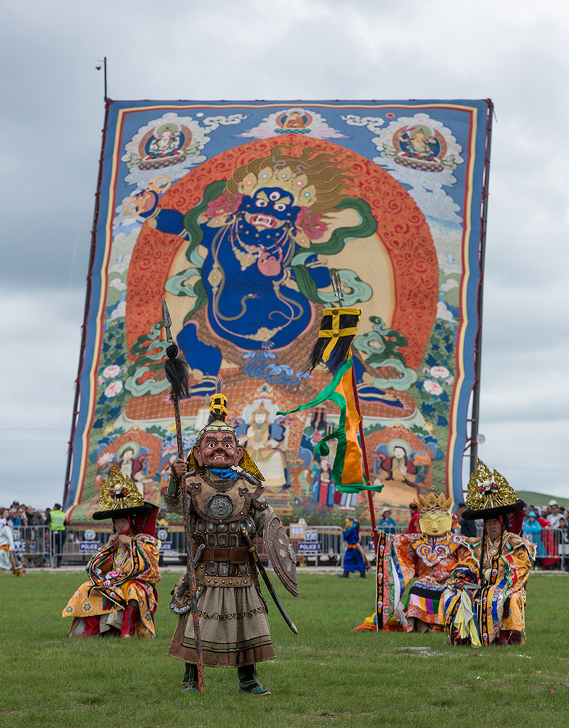 The unique part of the Khuree Tsam is the noble presence of Ochirvaani -Vajrapani and the deity is believed to be a special protector for Mongolia. Huge Thangka-Buddhist paint representing the supreme deity Vajrapani was displayed at the southern end of the festival square. He is called the Master of Unfathomable Mysteries who upholds truth even in adversities of darkness and ignorance.