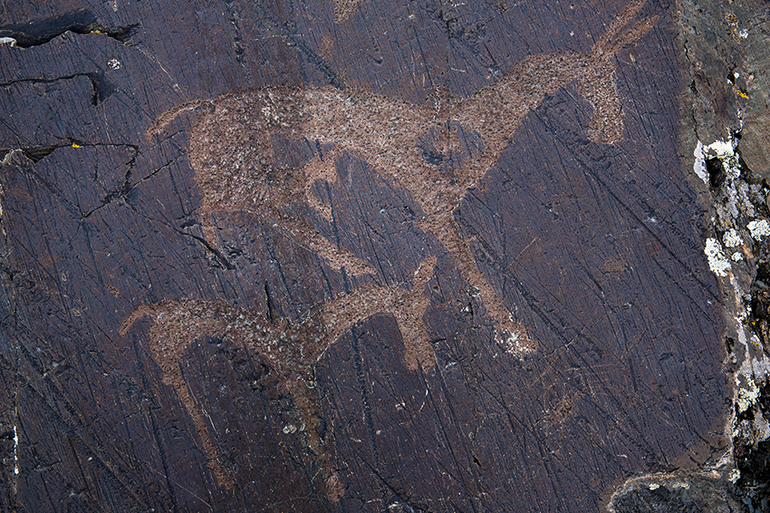 - Petroglyphs: Most carvings are found in the lower sections of the mountain, particularly on rocks scattered to the east banks of the Khar Salaa River. The best petroglyphs sit at the foot of the mountain on a large slab of polished glacial bedrock. These ancient etchings date from the Neolithic period to the Bronze Age, depicting wild animals, people, hunters riding horses, and wagons. The carvings provide insights into the lives of ancient hunters, early Mongol warriors, and the evolution of nomadic society.