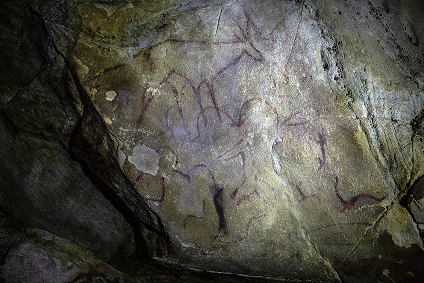 lsewhere in the cave, at a depth of 2 meters, a large number of overlapping symbols and animal shapes can be seen on the walls and ceilings, including images of deer, ibex, woolly mammoths and ostriches, which show the age of painting.