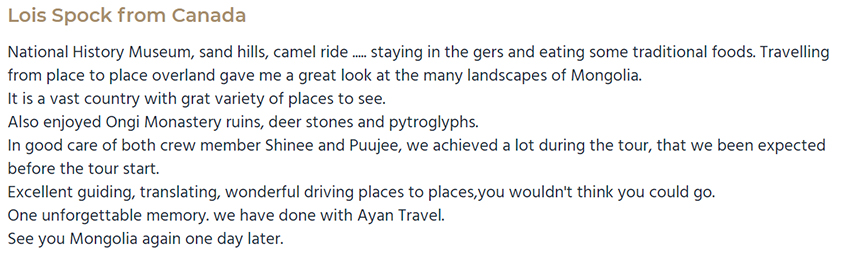CUSTOMER FEEDBACK RELATED TO DEER STONES AT UUSHGIIN UVUR