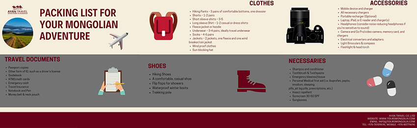 Please check the Mongolia Travel Packing List.