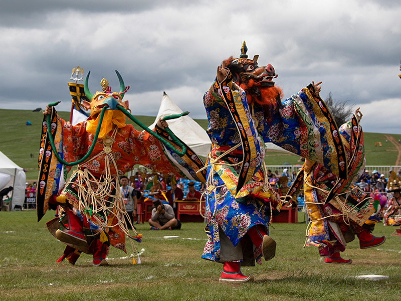 The Tsam is one of the five minor subjects of Buddhism –Choreography. The first tsam performance in Mongolia was performed in Erdene-Zuu monastery in 1786. The Tsam dance which is the perfect combination of song, dance, music, decorative art, and folk arts hold various types of ritual subjects and wearing mask indicating their respective roles and perform various motions of hands, legs, and body.