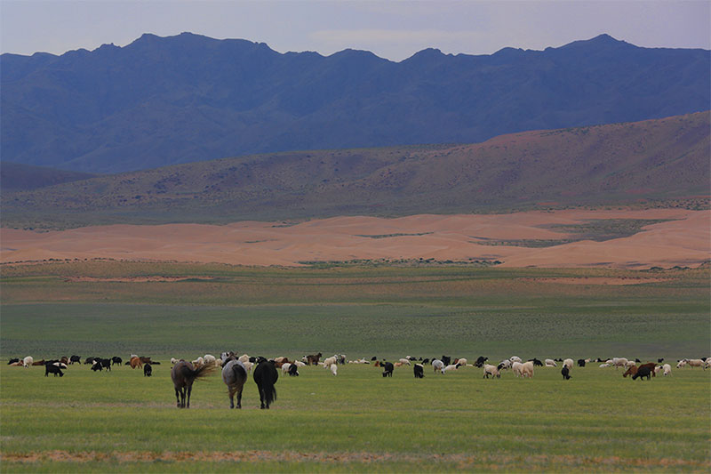 Mongolia has three types of deserts, and some of it has enough grass for livestock to graze.