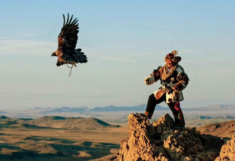 The Eagle Calling Competition showcases the deep bond between Kazakh hunters and their eagles. From a mountaintop, eagles are released as their owners call them from below. The birds must recognize their master’s voice and land precisely on their outstretched arms.
